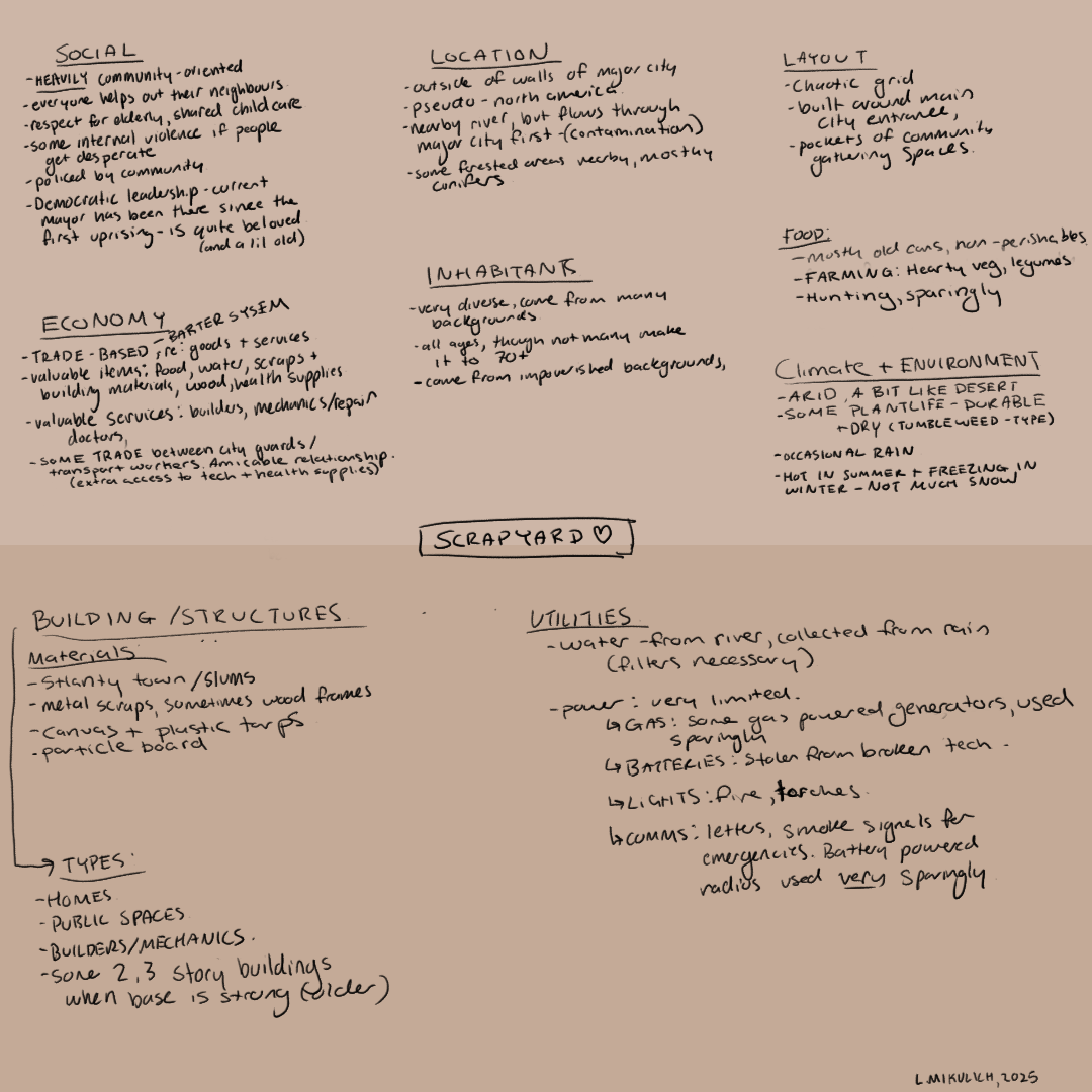 This piece is a part of a game concept I have been developing named “Scrapyard Revolt”, that explores themes of classism and revolution with a blended waste punk and sci-fi aesthetic.
